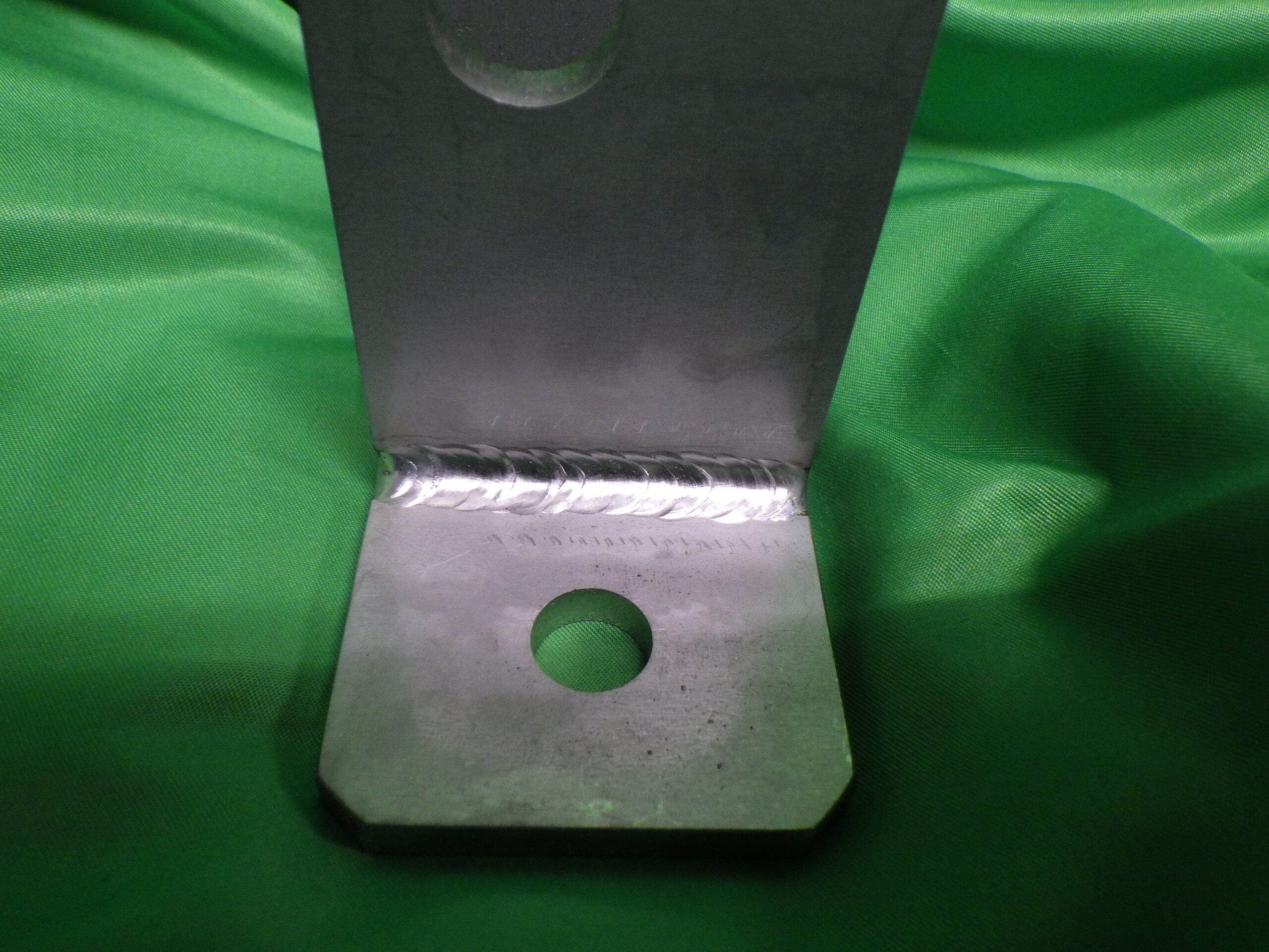 次に、本製品の品質の核となる溶接と修正の工程です。部材の接合には手動溶接を採用していますが、板厚6mmのステンレスは溶接時の熱入力が大きく、製品に「反り」が発生しやすいという特性があります。 アガツマでは、熟練の技術者が溶接を行った後、プレス機を用いて精密な「反り修正」を行います。この工程を加えることで、厚板ステンレスの強度を維持しつつ、ブラケットとして不可欠な平面度や直角度を高いレベルで確保しています。