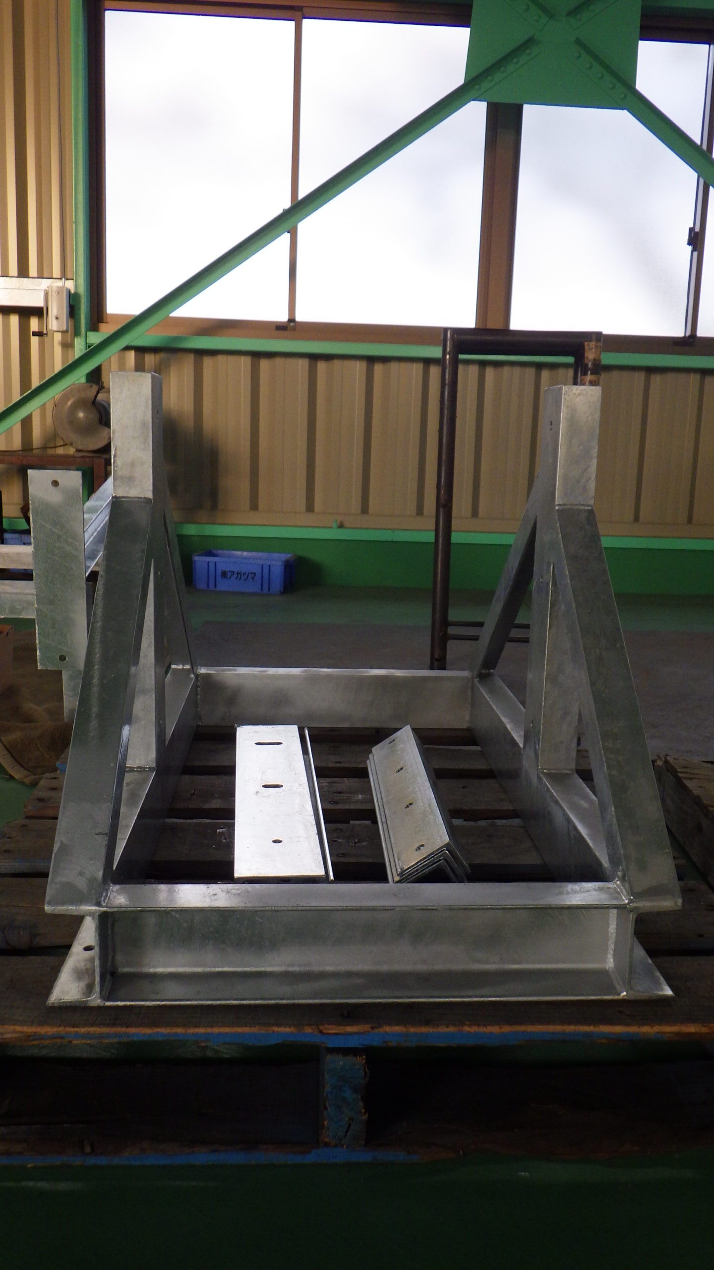 ドブメッキを施したアングル材、チャンネル材へ切断、穴あけ、溶接をおこない、製作いたしました。ドブメッキ(溶融亜鉛めっき)により、過酷なプラント環境下でも長期にわたる耐食性を確保しています。